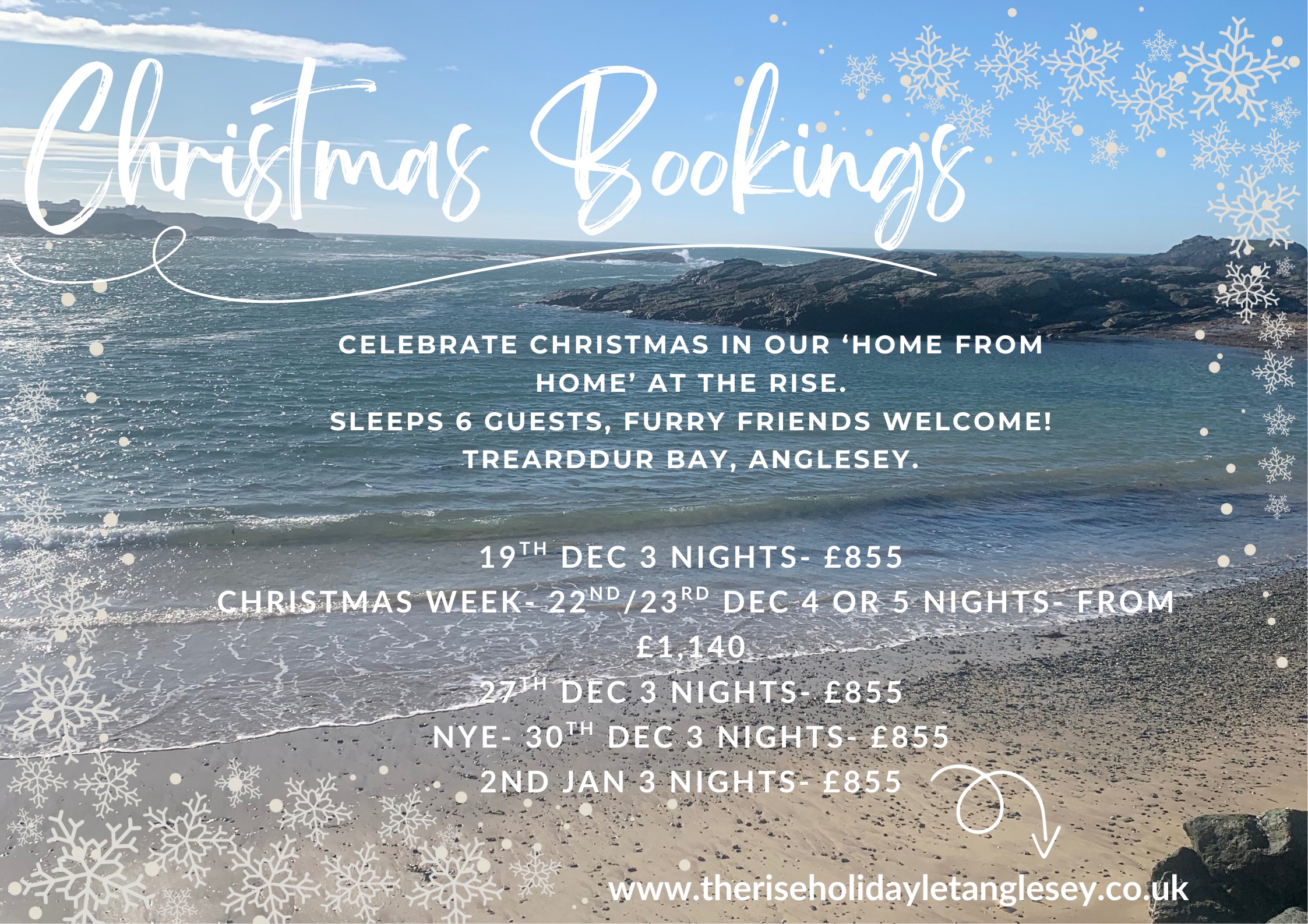 Through this website, we take secure online bookings booking conditions available here. We also advertise on airbnb, facebook and Instagram offering weekly, mid week and weekend breaks.